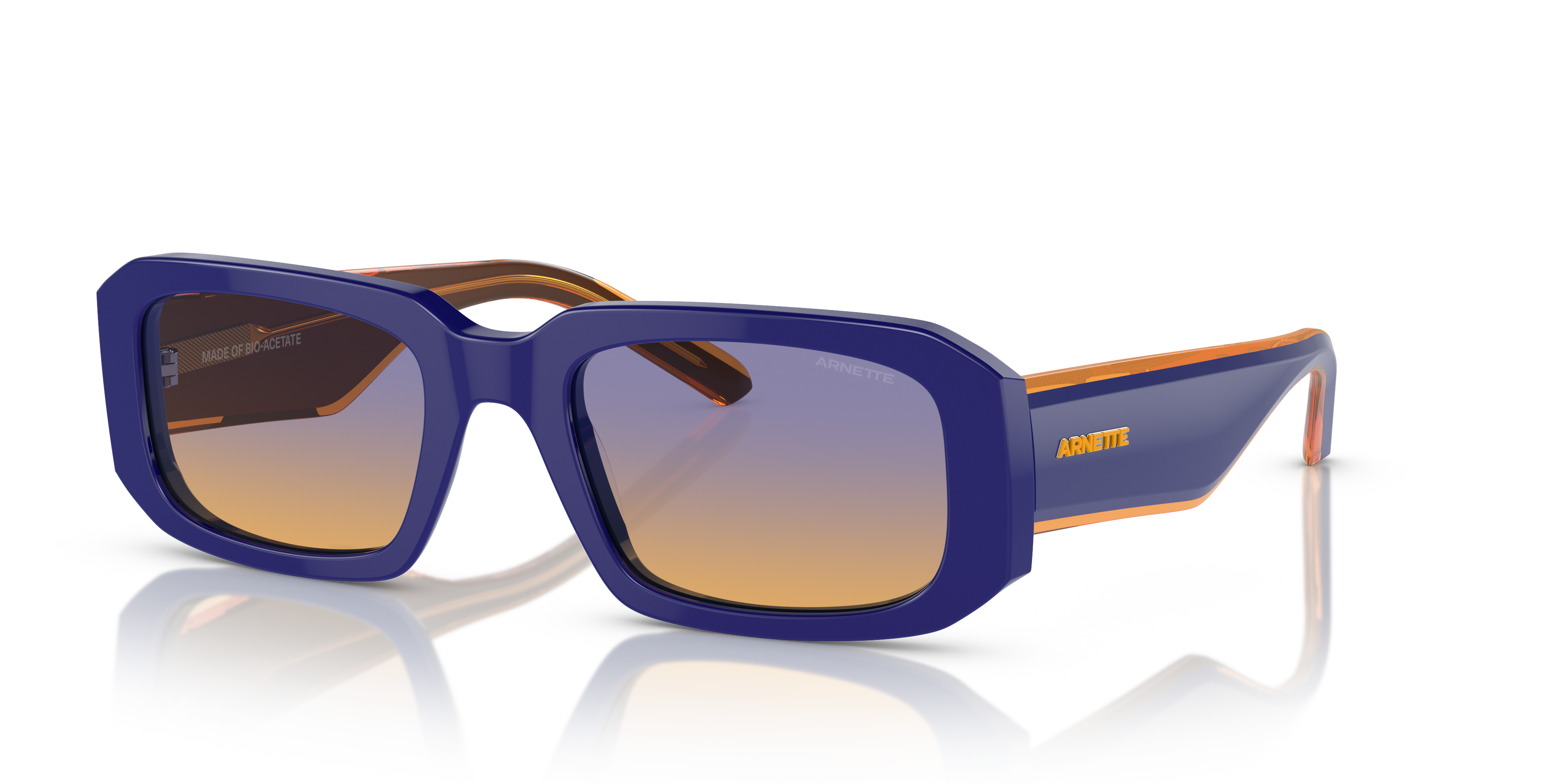 Embrace the synergy of style and performance with Arnette Thekidd sunglasses. The square shape, crafted from durable acetate material, offers a modern twist to a timeless design. The polished blue frame color is complemented by fifty blue/orange gradient lenses, adding a touch of sophistication to any outfit. These shades are not just for show; the gradient lenses also provide optimal vision clarity in varying light conditions. With their unique design and high-quality construction, these glasses are an excellent choice for those seeking both fashion and functionality. Available with prescription lenses.