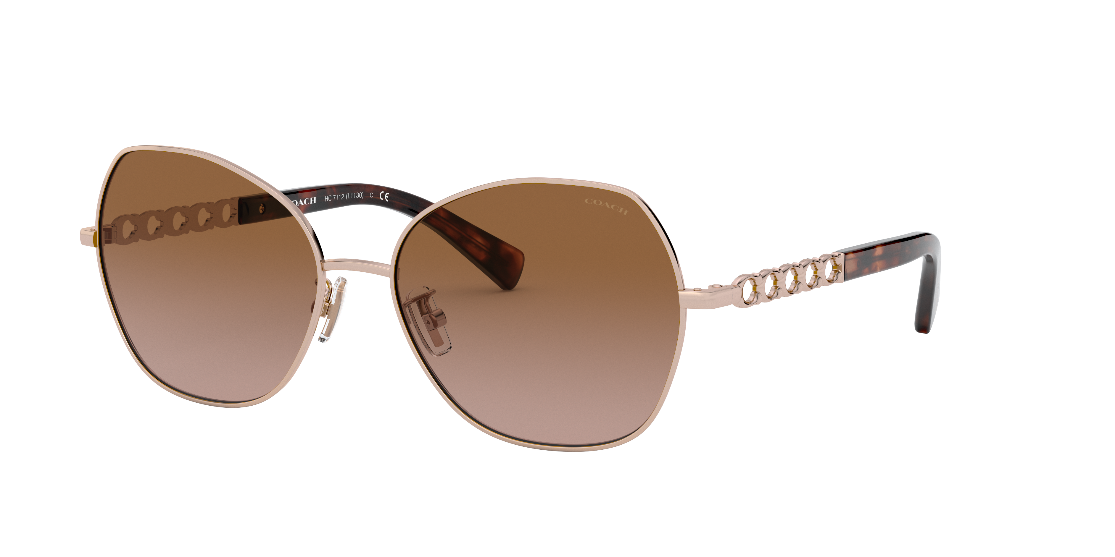 Elevate your fashion and functionality with Coach L1130 sunglasses. These glasses feature a polished rose gold metal frame in a cat eye shape, offering a modern and glamorous look. The brown rose gradient lenses provide excellent protection while adding a touch of sophistication to your style. Experience the unique blend of fashion and practicality with these beautiful shades. Available with prescription lenses.