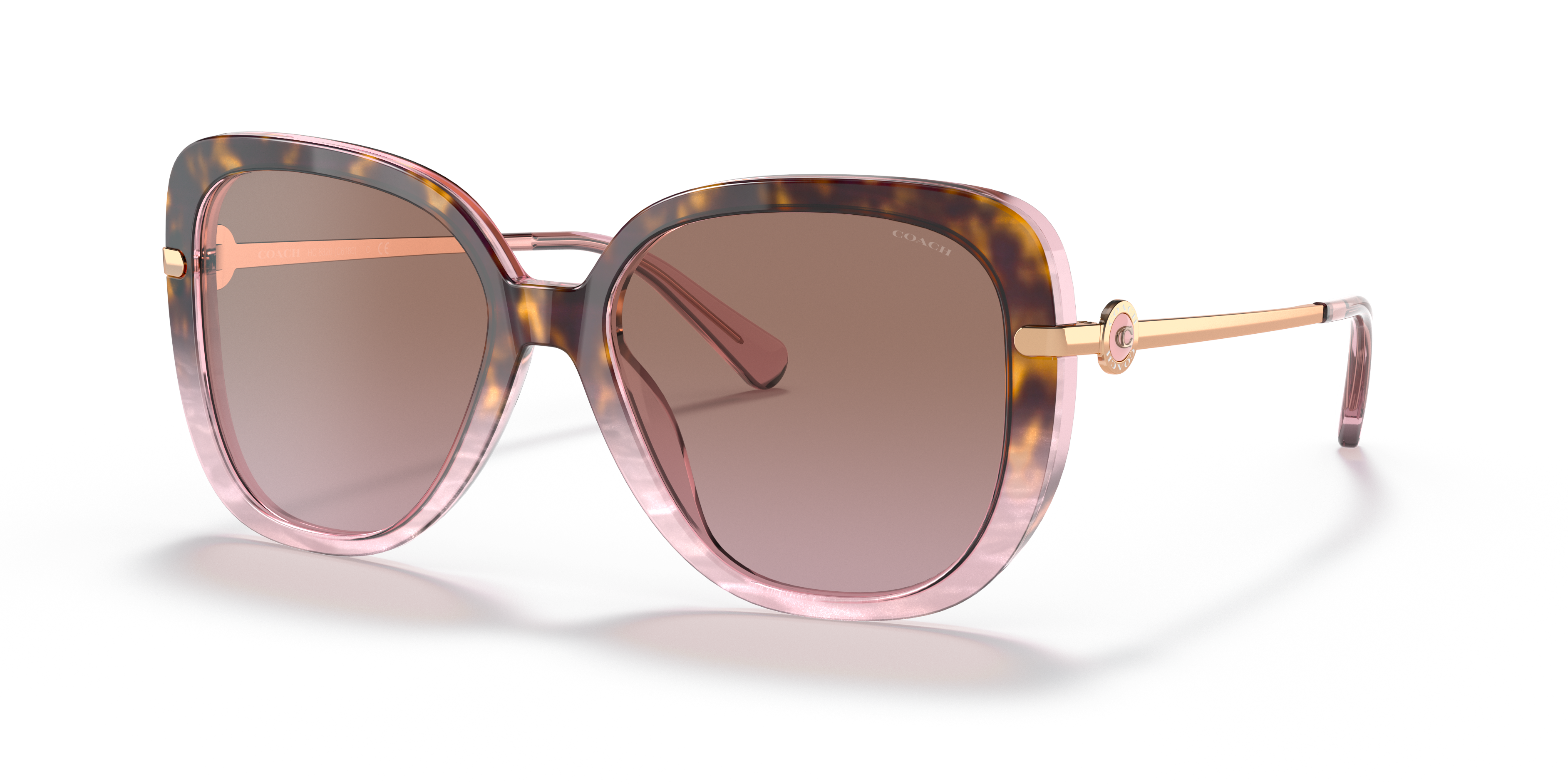 Elevate your style and performance with Coach C6180 sunglasses. These square-shaped glasses feature a polished rose tortoise gradient frame made of durable acetate. The pink lens adds a pop of color, while the gradient mirror treatment provides enhanced contrast and clarity. With their chic design and superior functionality, these shades are an ideal choice for everyday wear. Available with prescription lenses.