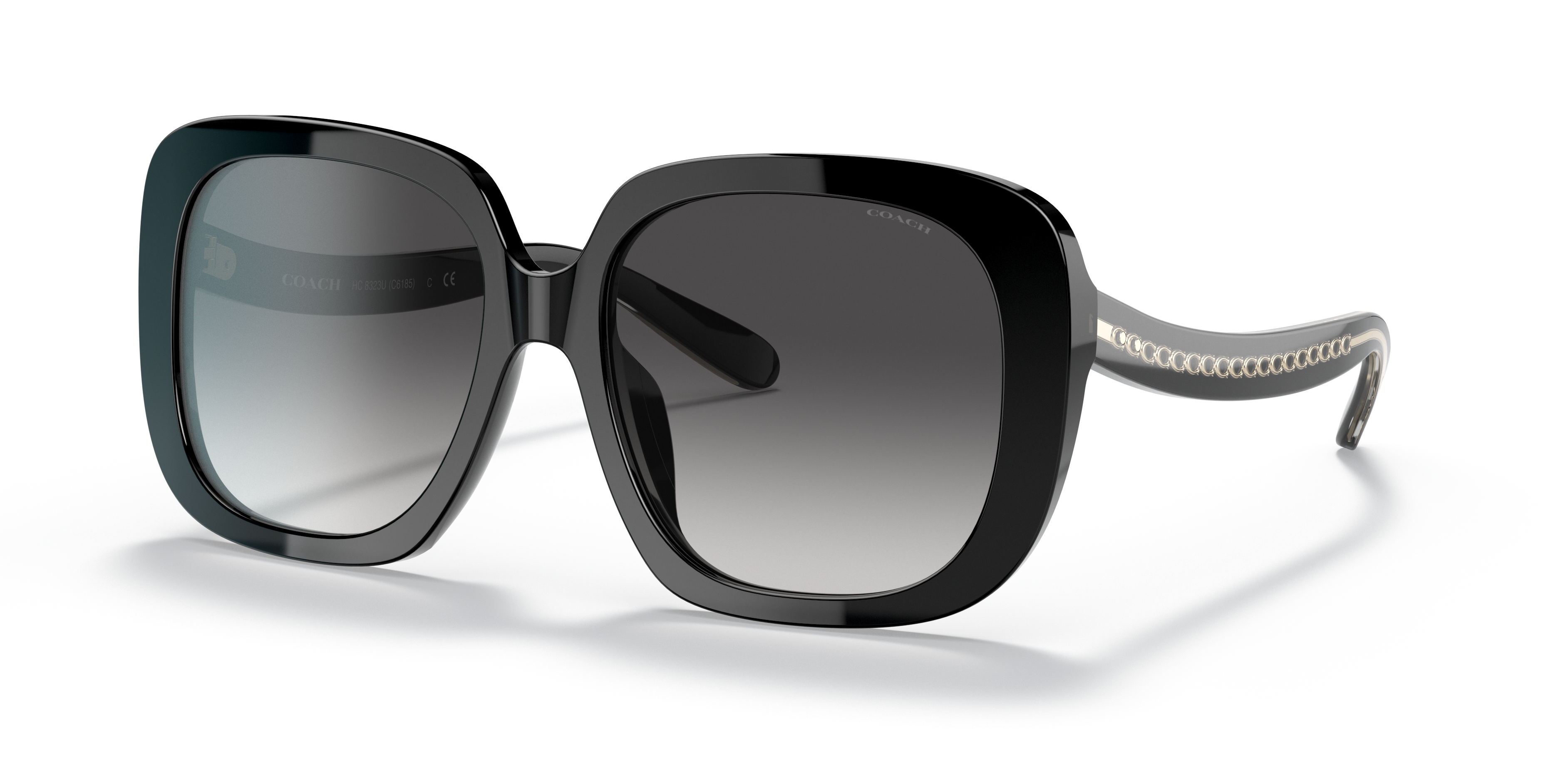 Elevate your style with Coach C6185 sunglasses. The square shape and polished black acetate frame offer a modern and sophisticated look. The light grey gradient black lenses provide both style and functionality, making these shades a versatile choice for any fashionista. These glasses are not only stylish but also practical. Available with prescription lenses.