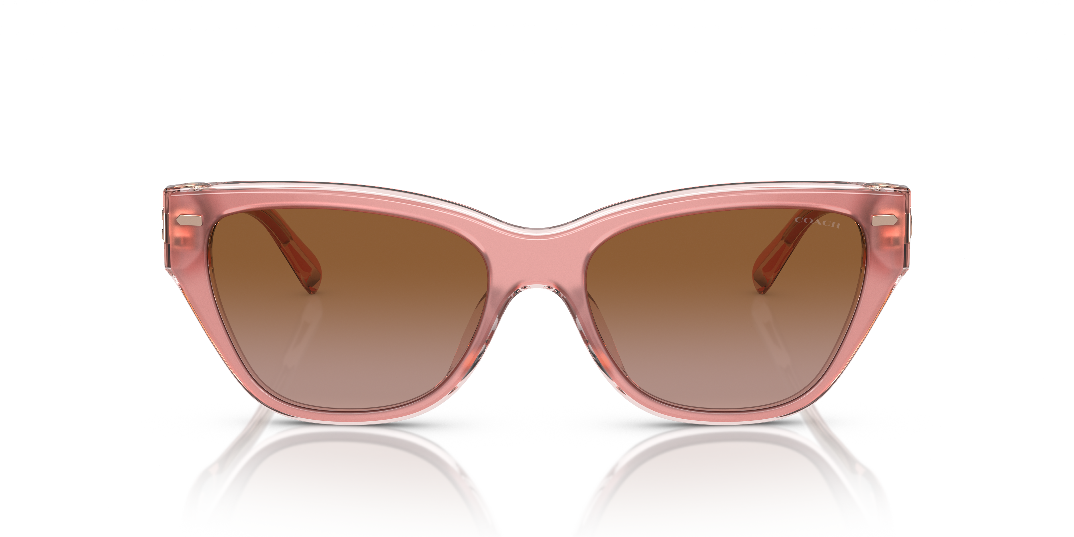 Elevate your fashion and performance standards with Coach CH570 sunglasses. The cat eye shape, crafted from durable acetate, adds a touch of sophistication to any look. The polished milky pink/transparent pink frame color finish exudes elegance, while the brown gradient lenses provide optimal clarity and sun protection. These shades are a versatile choice for everyday wear.
