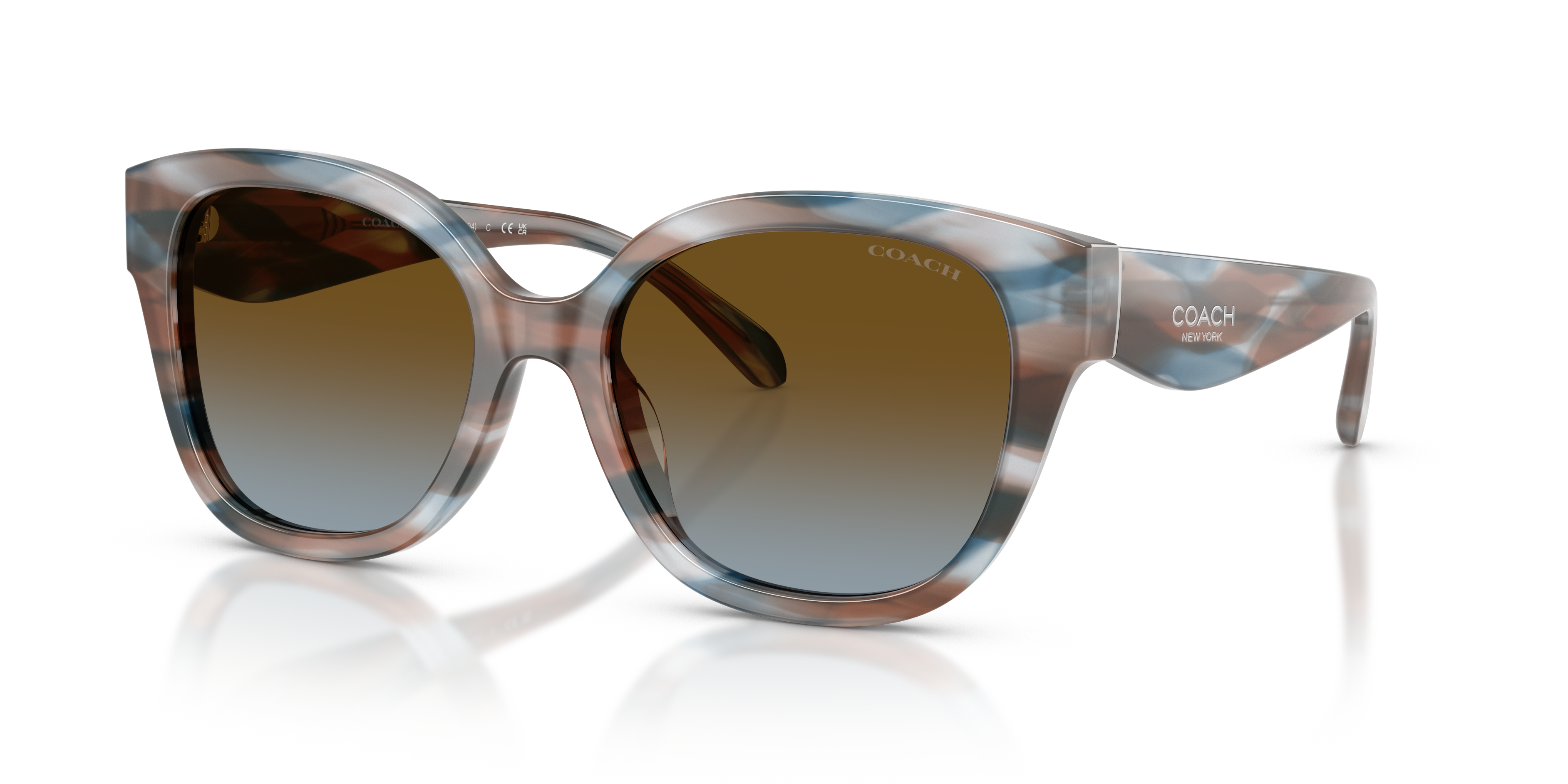 Experience the epitome of style and performance integration with Coach CBY94 sunglasses. The square shape, crafted from acetate material, offers a modern and sophisticated look. The polished striated maple/blueberry frame color adds a pop of color to your outfit, while the brown blue gradient lenses provide optimal glare reduction and superior vision clarity. These shades are designed for those who want to make a statement without compromising on quality or comfort.