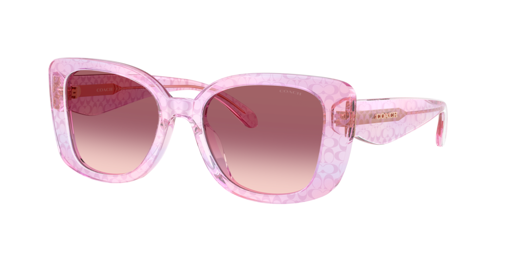Embrace bold femininity with the Coach HC8450U CDP48 sunglasses, exuding a distinctive New York attitude. These square sunglasses, crafted from premium acetate, feature strong lines and sharp angles for a modern and structured style. The violet gradient lenses and matching violet frame front showcase a playful yet refined color palette. A subtle Signature C pattern adds a unique touch, reflecting Coach's rich design heritage. Equipped with a classic saddle bridge and acetate temple tips, these Coach sunglasses deliver comfort and timeless sophistication.