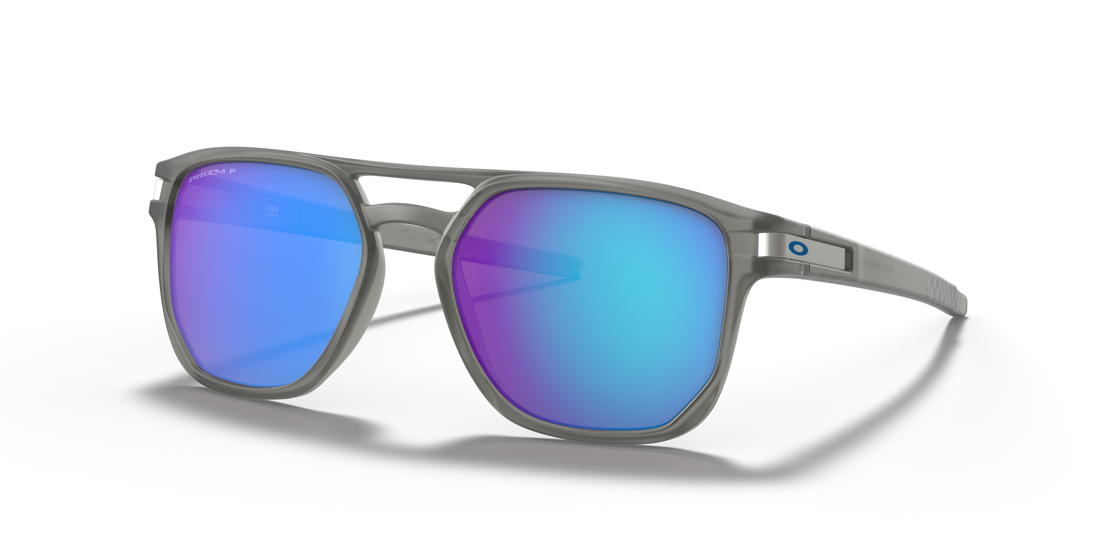 Oakley Latch™ Beta sunglasses seamlessly blend style and performance. The square shape and matte grey ink frame, made from durable o matter material, provide a modern look that is both lightweight and impact-resistant. The prizm sapphire polarized lenses not only enhance color contrast but also reduce glare for improved visibility while providing excellent sun protection. These shades feature the unique latch mechanism, allowing you to attach them to your shirt or jacket with ease when not in use. Available with prescription lenses.