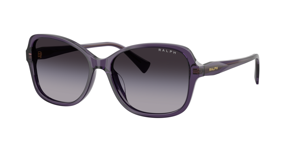 Elevate your style with the Ralph RA5351U gradient sunglasses. These oversized butterfly frames boast strong lines and sharp angles for a modern, structured look. Crafted from durable acetate, the softly beveled temples enhance comfort and design. A striking violet frame complements the grey gradient lenses, creating a bold yet sophisticated aesthetic. Finished with the signature Ralph block logo, these full-rim sunglasses embody timeless elegance.