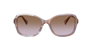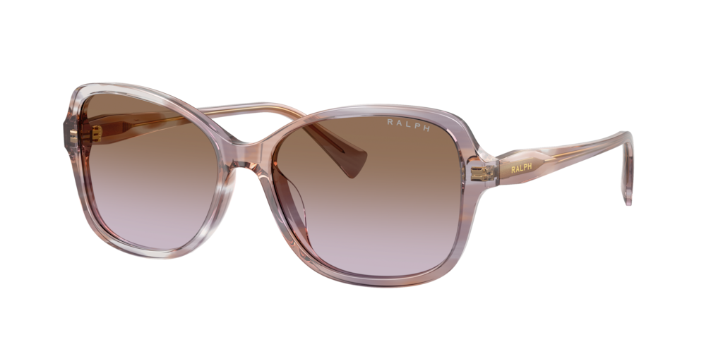 Make a bold statement with the Ralph RA5351U sunglasses. These oversized butterfly frames, crafted from durable acetate, boast softly beveled temples for a structured yet elegant design. Finished with a striped brown front and violet gradient lenses, they exude modern sophistication. A striking Ralph block logo adds a signature touch to enhance their feminine appeal. Perfect for those seeking style and advanced UVA/UVB protection.
