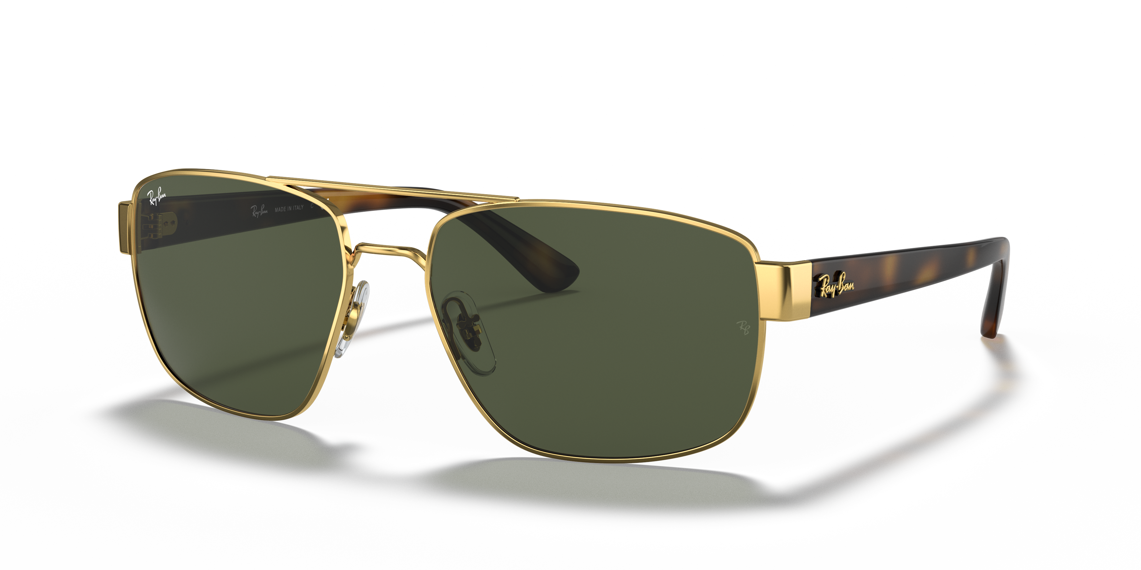Elevate your style while maintaining a high level of performance with Ray-Ban RB3663 sunglasses. The irregular shape and gold metal frame, combined with classic green lenses, give these shades a unique and sophisticated look. The polished finish adds a touch of elegance to the overall design. These glasses are not only stylish but also versatile for any occasion. Embrace the timeless appeal of Ray-Ban shades and discover the perfect accessory for your fashion-forward wardrobe. Available with prescription lenses.