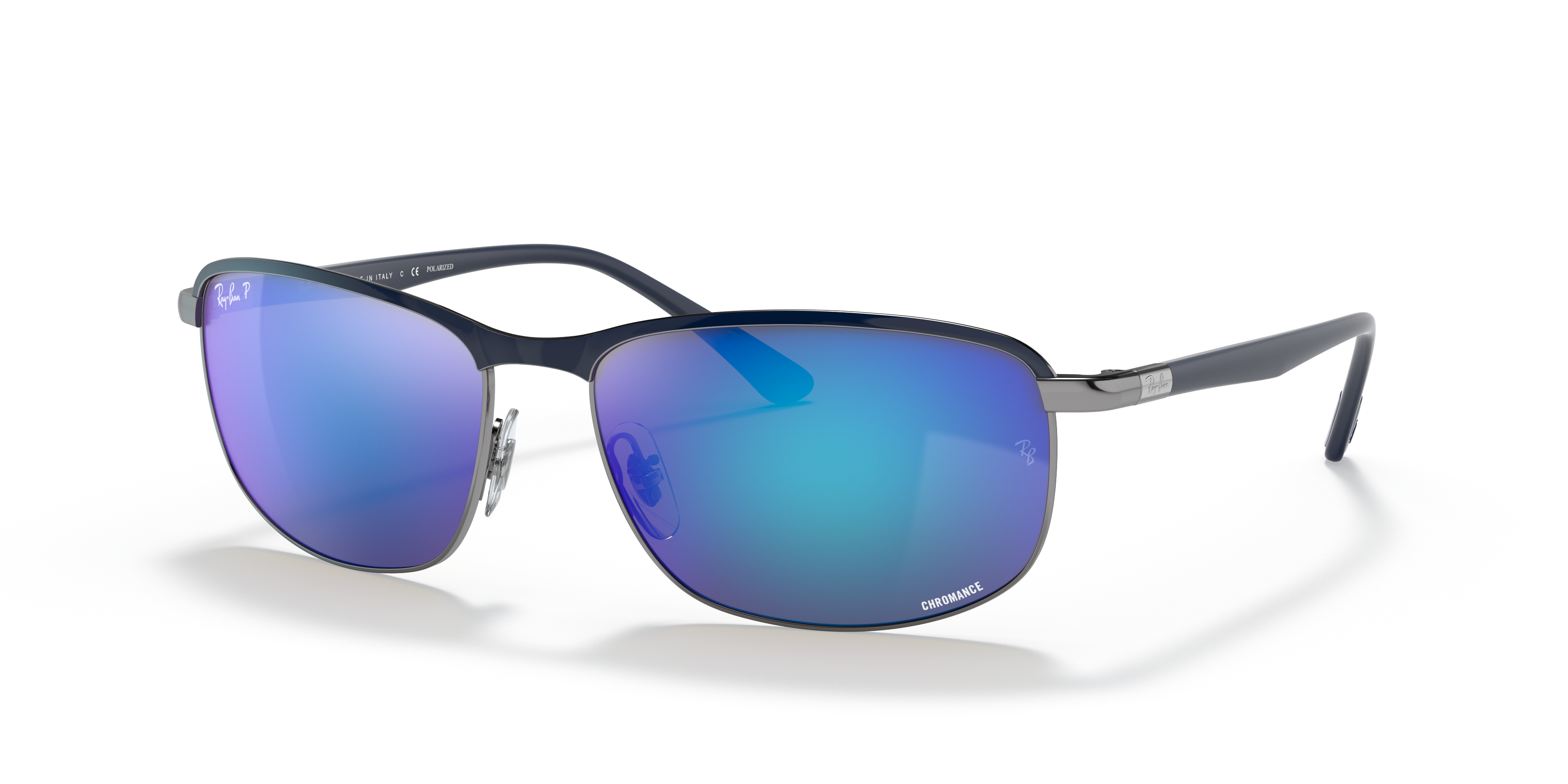 Ray-Ban RB3671CH Chromance sunglasses are a unique blend of style and performance. The pillow shape, crafted from durable metal, offers a modern twist on the iconic aviator design. The matte blue on gunmetal frame is complemented by grey/blue polarized lenses with chromance treatment, providing superior color contrast for an enhanced visual experience. Available with prescription lenses.
