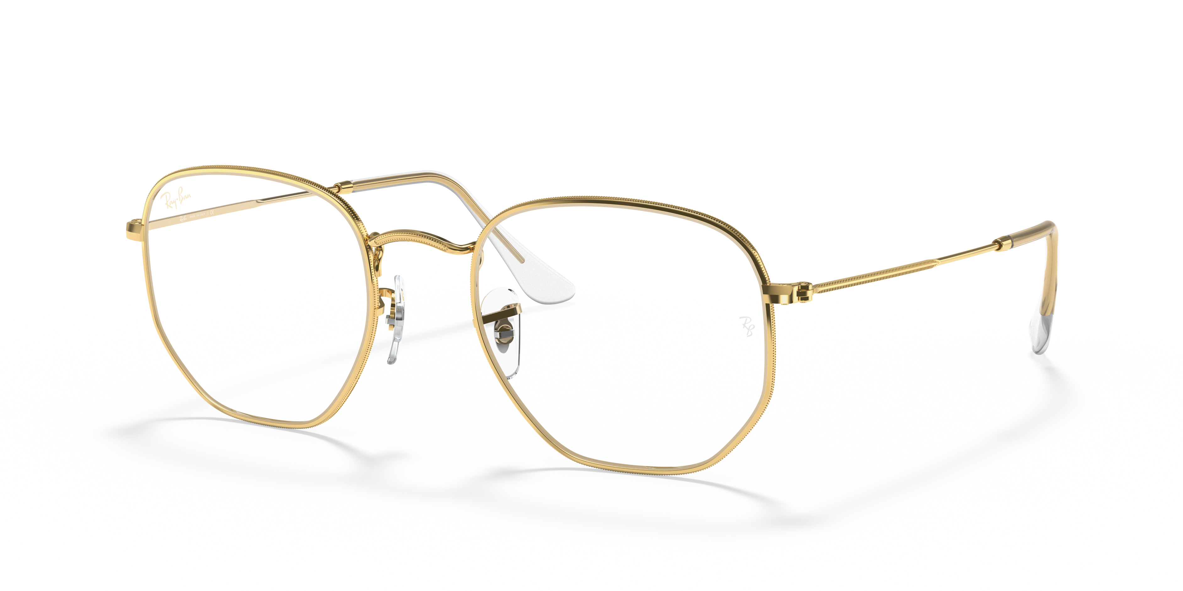 Ray-Ban Hexagonal Blue-Light Clear glasses are a unique blend of style and technology. The irregular shape adds a touch of modernity to your look, while the polished gold metal frame provides durability. The mirror treatment on the lenses enhances both visual clarity and aesthetics, making these shades a perfect choice for those who want to make a fashion statement. Available with prescription lenses.