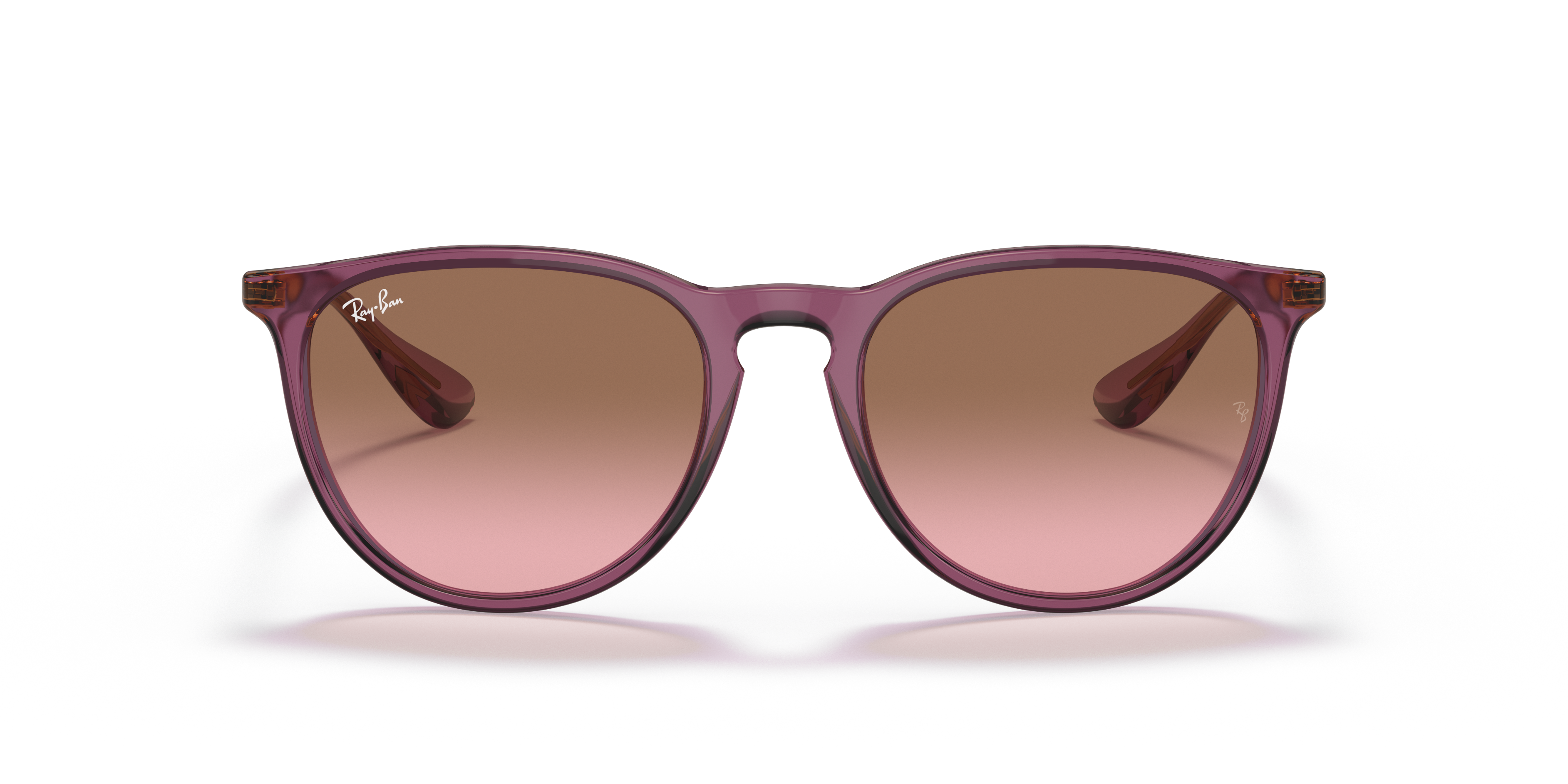 Ray-Ban Erika Classic shades are a modern twist on the classic optical glasses. The phantos shape and transparent violet frame offer a unique and stylish look, while the pink gradient brown lenses provide optimal vision clarity. The key bridge design adds a touch of sophistication to these frames, making them perfect for everyday wear. These glasses are not only fashionable but also functional. Available with prescription lenses.