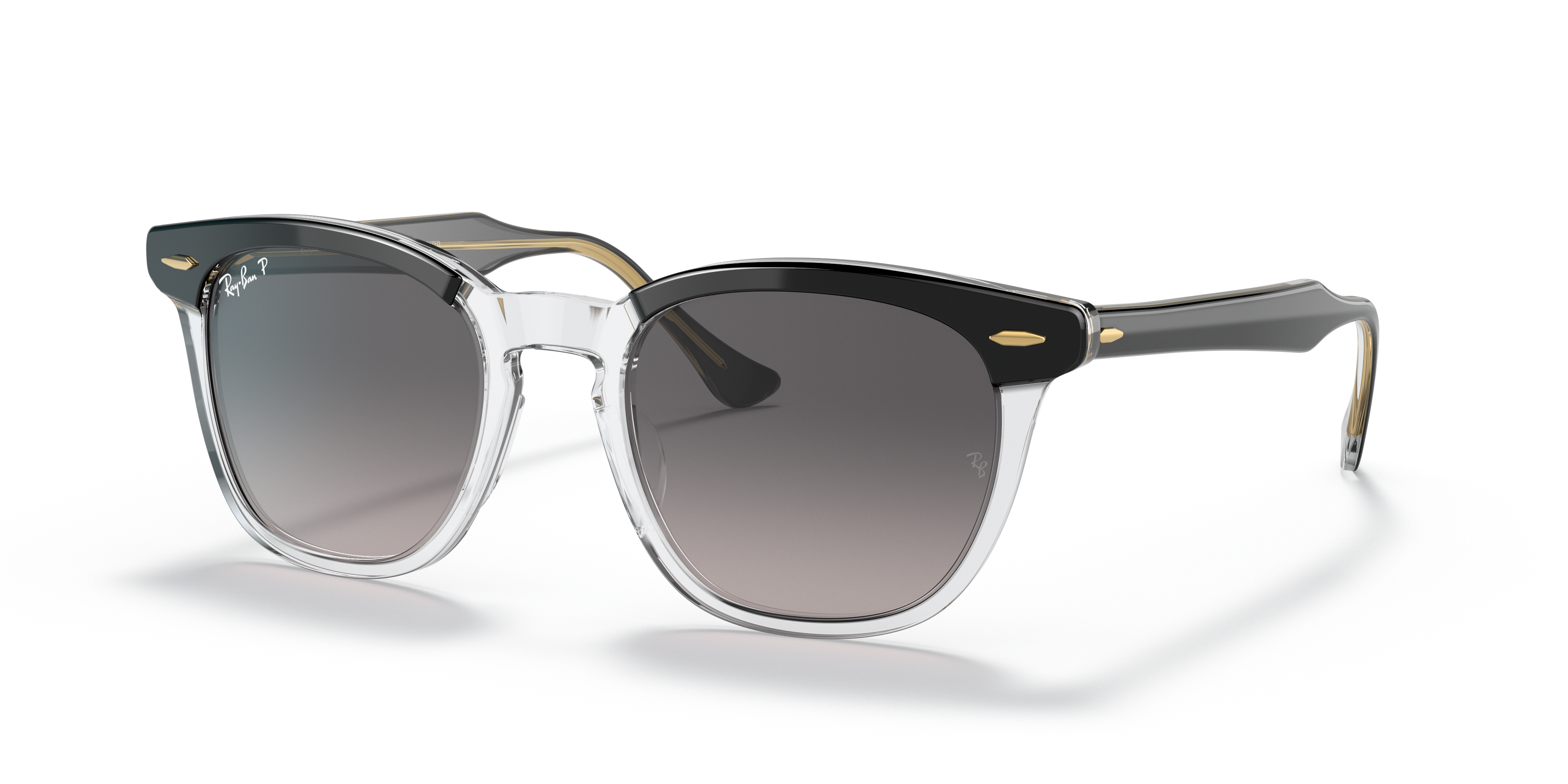 Discover the meticulous craftsmanship that unites style and performance in Ray-Ban Hawkeye sunglasses. These square-shaped glasses feature a polished black on transparent acetate frame with grey gradient polar lenses, providing excellent protection against glare and harmful UV rays. The key bridge design adds a touch of sophistication to these shades. Available with prescription lenses.