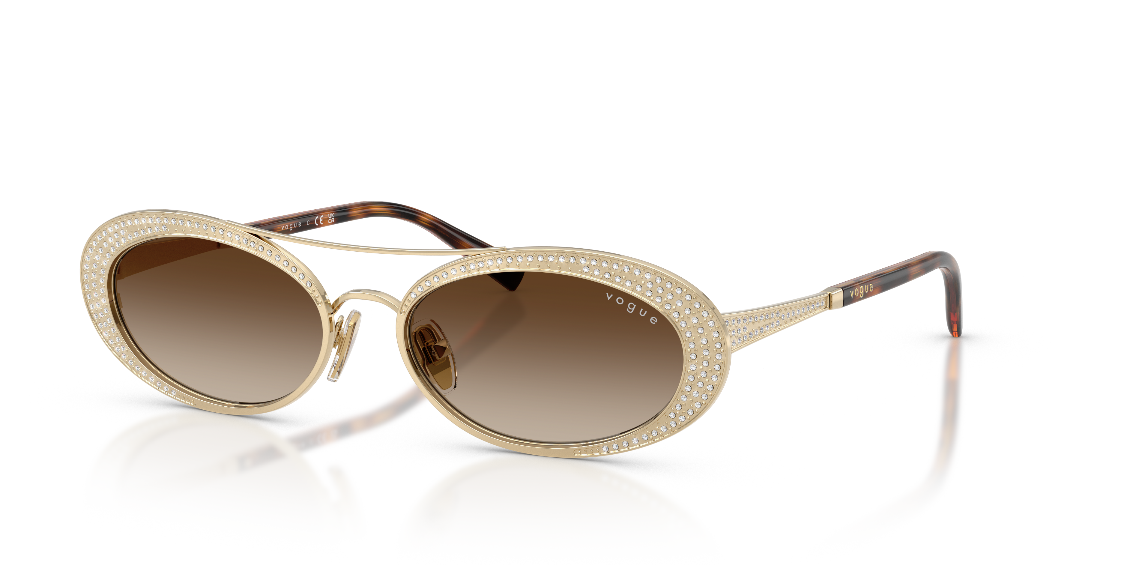 Elevate your style quotient with Vogue Eyewear VO4348SB sunglasses, featuring a polished silver metal frame adorned with strass for added sparkle. The clear gradient blue lenses not only add a pop of color but also provide excellent protection against harmful UV rays. Embrace the glamour and sophistication that these shades offer while staying on trend with the chic lenses choice.