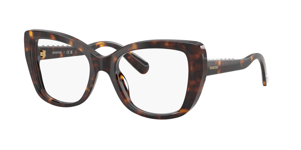 The Swarovski SK2066U optical frames exude sophistication with their striking havana cat-eye design. Crafted from lightweight acetate, these havana frames feature elegant pearls and sparkling crystals along the temple edges, adding a touch of radiance. Universal fit glasses with pearl-tipped temple ends ensure both comfort and luxury for a refined look.
