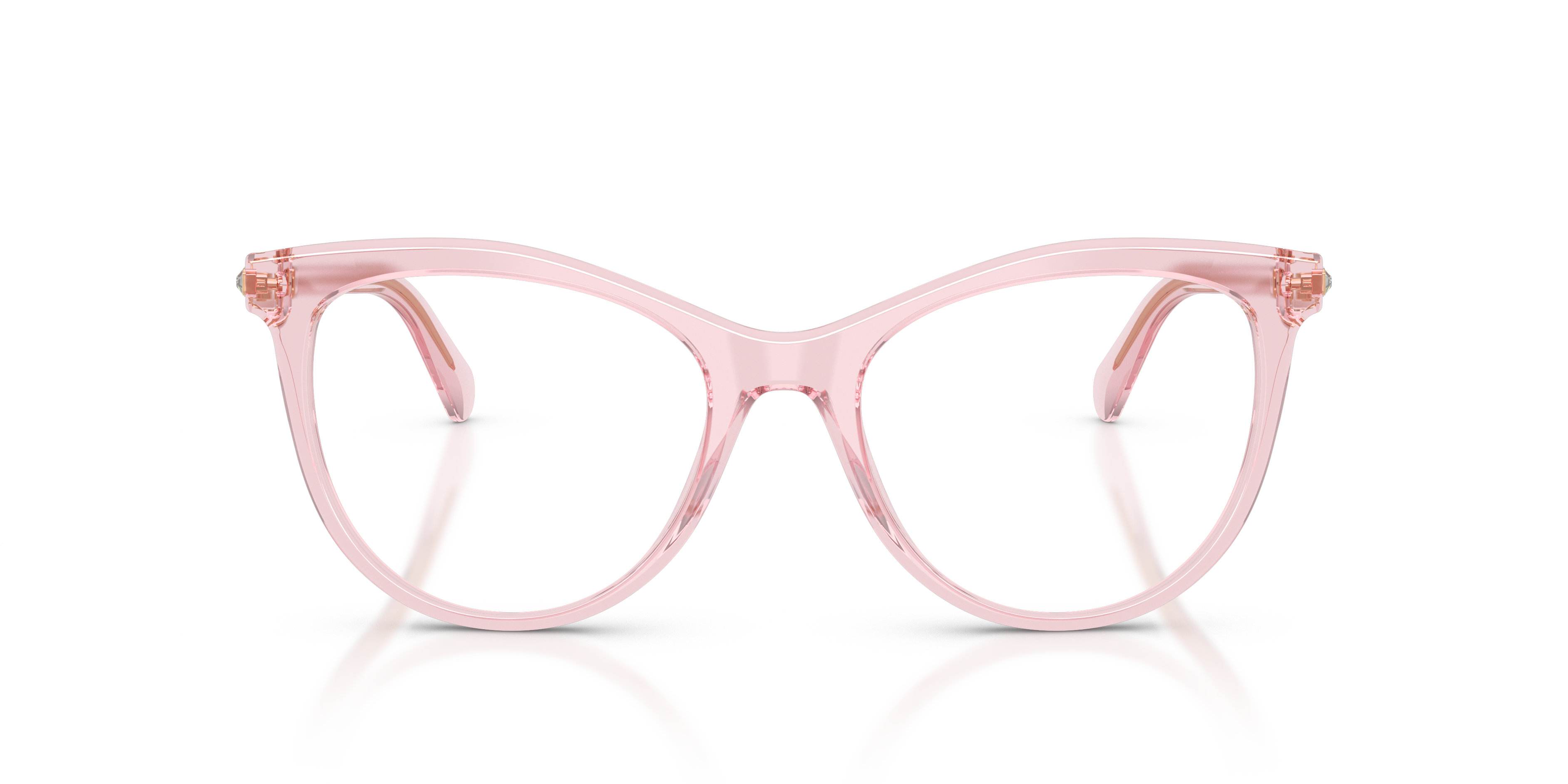Elevate your everyday look with the Swarovski SK2064 optical glasses. These full-rim round eyeglasses, crafted from transparent pink acetate, offer a retro-inspired charm. The metal temples showcase Swarovski's signature strass crystal embellishments for a touch of sparkle, while the lasered logo in rose gold, gold, and silver adds refined detail. Perfect for those who appreciate artistry and elegance.