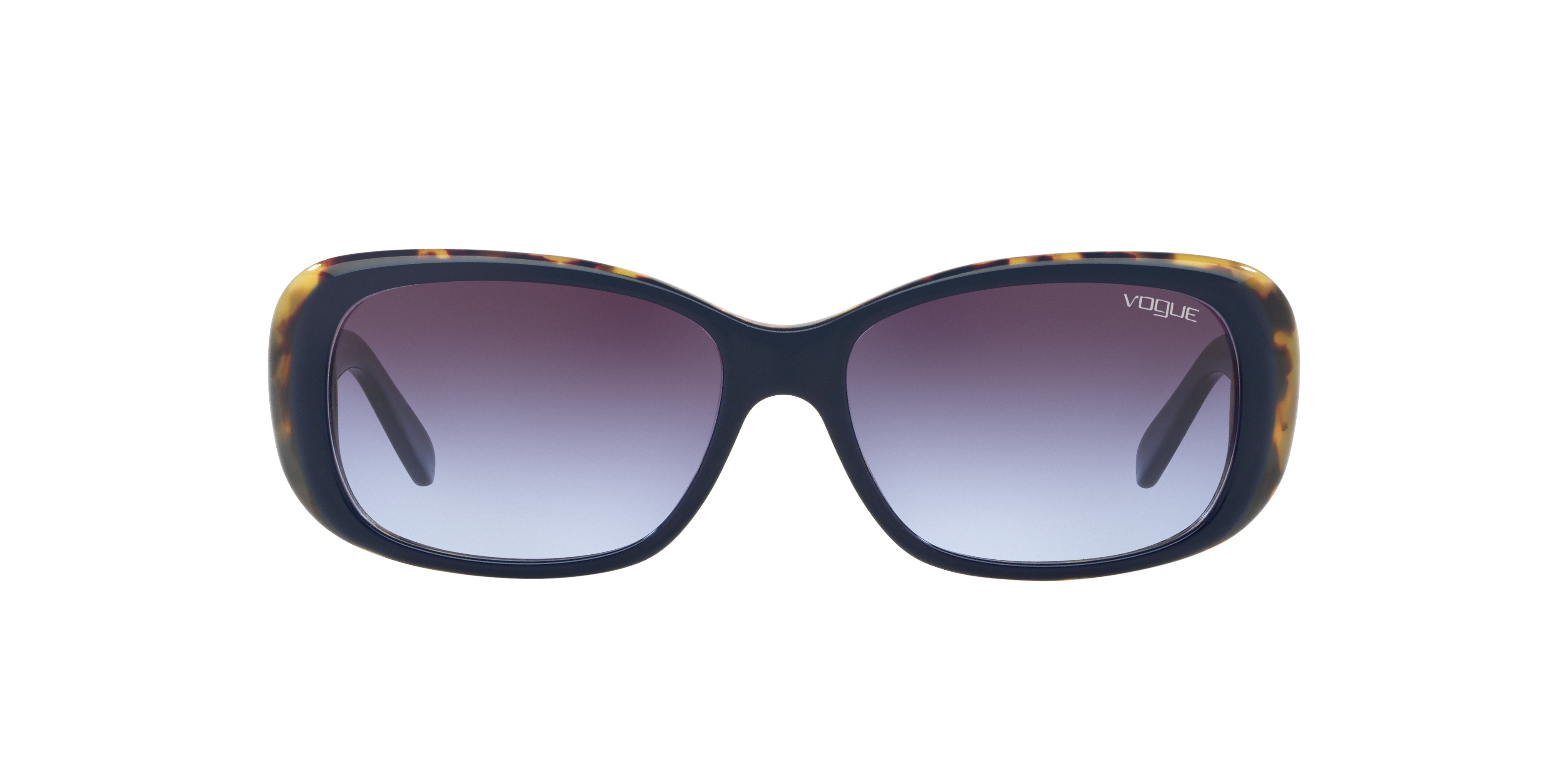 Step into the spotlight with Vogue Eyewear VO2606S sunglasses. The rectangle shape and polished finish of the top blue/tortoise acetate frame add a touch of sophistication to your look. Featuring violet gradient dark grey lenses, these shades offer both style and protection. Embrace your unique style with these strikingly stylish glasses. Available with prescription lenses.