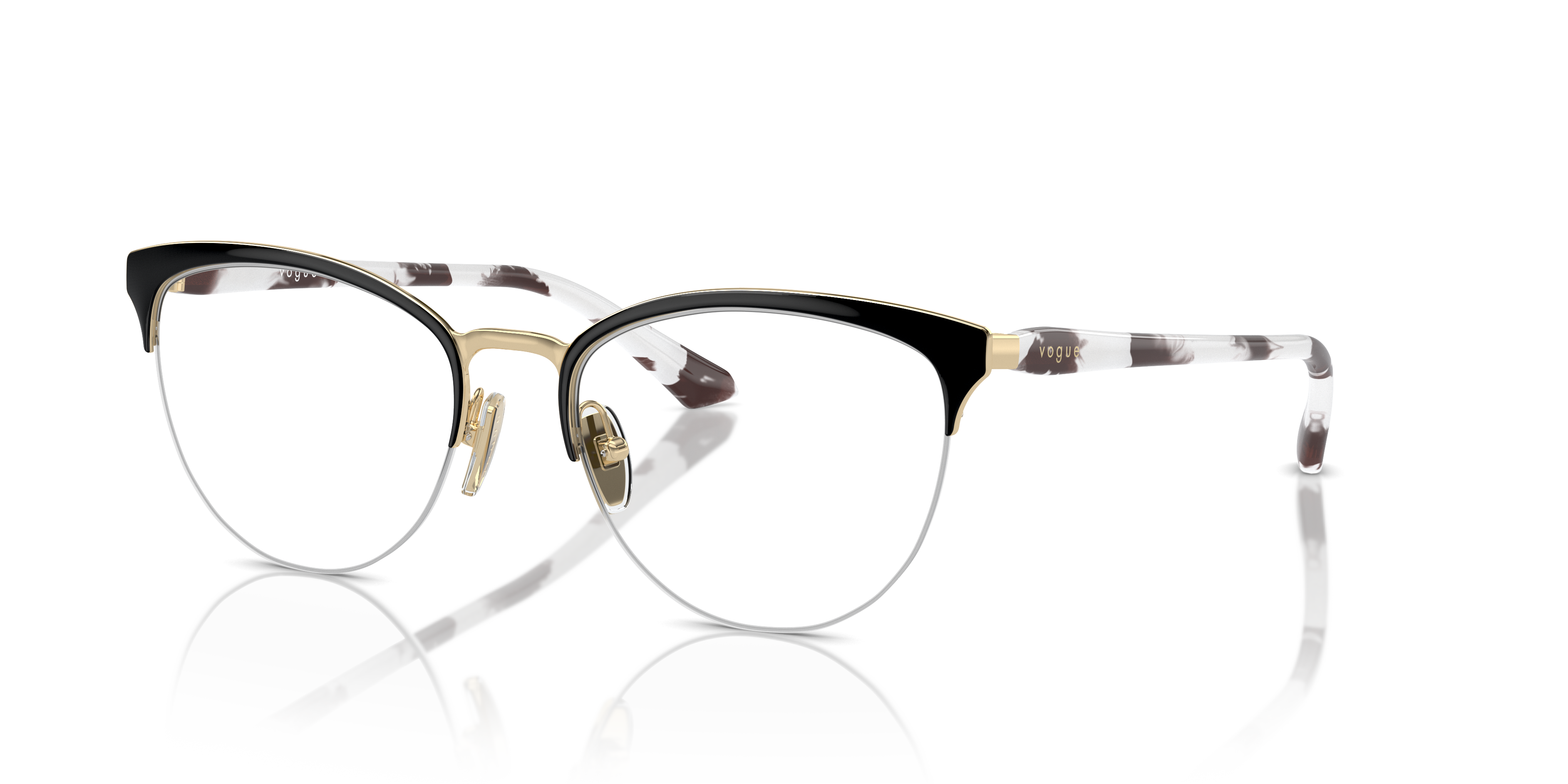 Discover the impeccable synergy of style and optical functionality in Vogue Eyewear VO4304 glasses. The oval shape of these frames, crafted from polished metal, adds a touch of sophistication to any look. The top black/pale gold color finish is a versatile choice that complements any outfit. These shades are not only stylish but also practical. Embrace your unique sense of fashion with this pair of optical glasses from Vogue Eyewear. Available with prescription lenses.