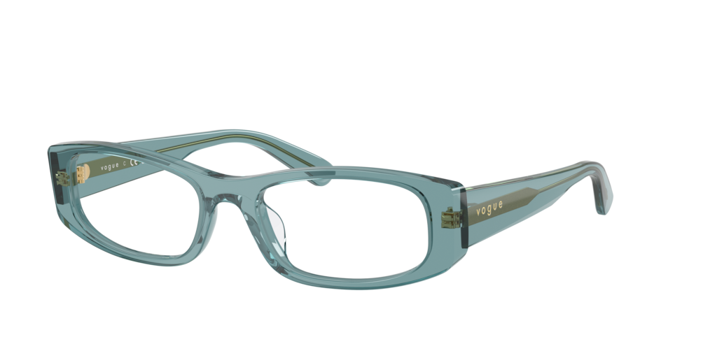 The Vogue Eyewear VO5699U optical frames combine a contemporary pillow shape with soft, balanced contours for everyday sophistication. Crafted from acetate, the transparent blue frames exude modern charm. Complete with the iconic Vogue Eyewear logo on the temples, these full-rim frames add a sleek, fashion-forward touch.