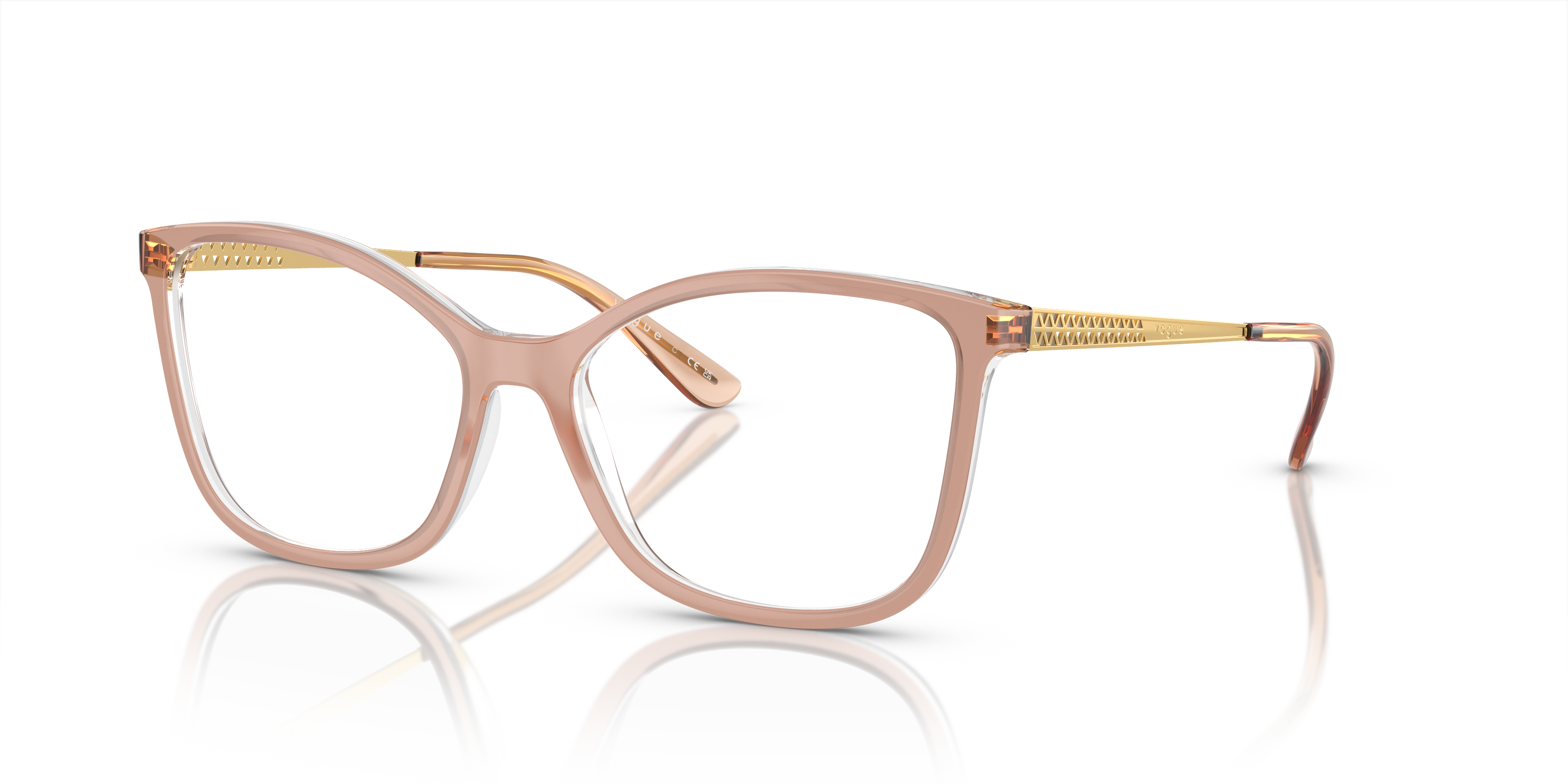 Elevate your eyewear fashion with Vogue Eyewear VO5334. The polished black frame, crafted in a butterfly shape, offers a modern yet timeless appeal. The saddle bridge ensures a comfortable fit while the distinctive design adds a touch of sophistication. These eyeglasses are not only stylish but also practical. Embrace your individuality and make a statement with these chic frames. Available with prescription lenses.