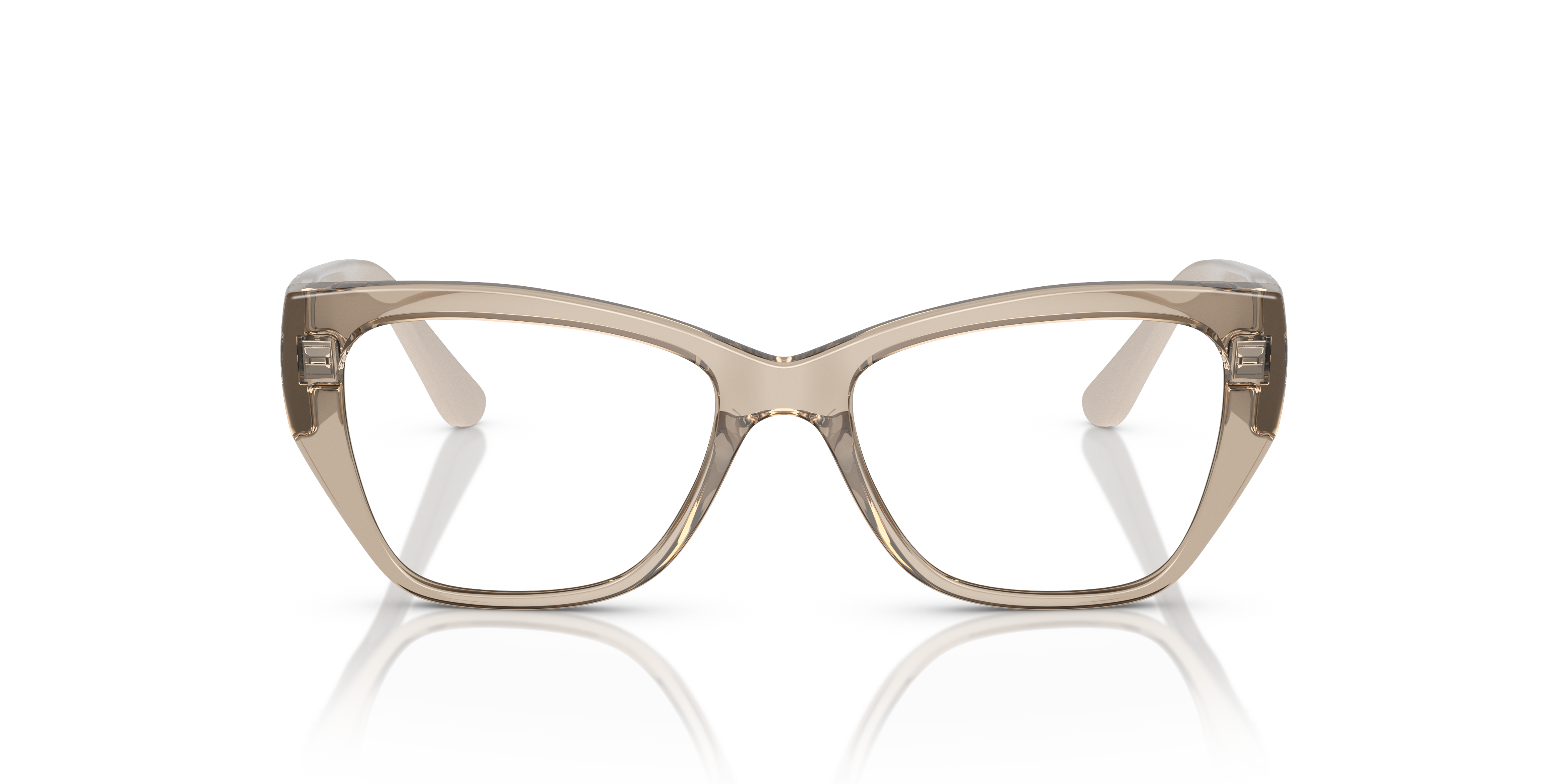 Achieve a sophisticated look with Vogue Eyewear VO5483 eyeglasses. The polished transparent light brown frame in a unique butterfly shape adds a touch of glamour to any outfit. These glasses are stylish and practical, adding an extra element of flair to your look. Embrace your individuality and express your unique style with these stunning frames.